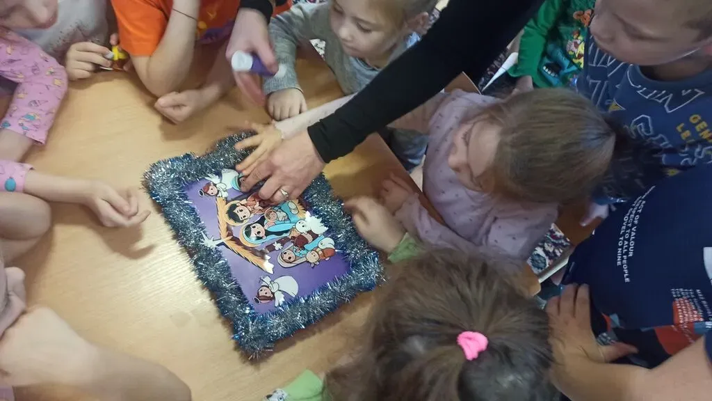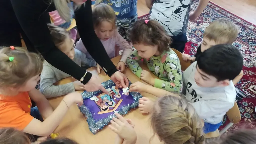 В нашем детском саду совместно с представителем Троицкой сельской библиотеки Светланой Александровной Дубовой прошло интересное занятие час Духовного общения или "Крестные родители", посвященное Рождеству Христову и роли крестных родителей. Духовно - нравственное воспитание детей с изучением основ православной веры неотъемлемая часть в дошкольном образовании. Рассказать о роли крёстного родителя, где Крёстные — это особые попечители, которые помогают ребёнку вырасти в православной вере. Они дают Богу обещания за младенца и становятся его поручителями перед церковью. Крёстный — это живой пример для подражания. Его задача — поступками показывать крестнику, что такое настоящая христианская любовь и милосердие. А так же ребята выполнили коллективную работу "Рождество", символизирующей рождение младенца - Христа. Целью которого было развивать творческую фантазию и мелкую моторику рук. Воспитывать положительное отношение к православной вере и культуре. Но самым трогательным было чтение стихов детьми о крестных родителях.